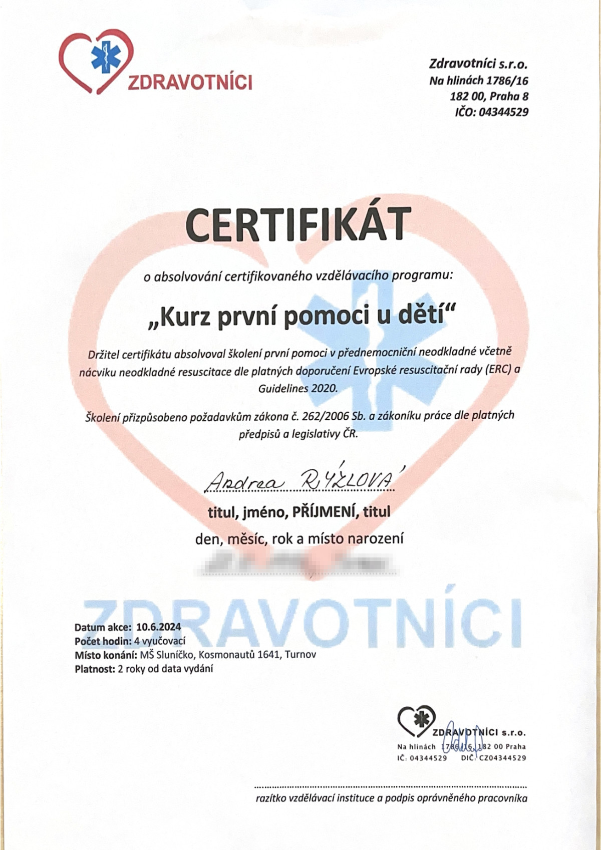 Po střední škole, kde jsem studovala obor Letecké technologie, jsem chvíli hledala, jakým směrem se dál vydat. Vzhledem k tomu, že mám v rodině blízko ke zdravotnictví, rozhodla jsem se vyzkoušet obor Diplomované dětské sestry, i když to bylo něco úplně jiného než předchozí studium. Studium mě obohatilo a naučilo spoustu důležitých věcí, ale nejvíc mi dalo setkání s dětmi během praxe v jesličkách. Právě tam jsem poprvé cítila, že jsem na správném místě.