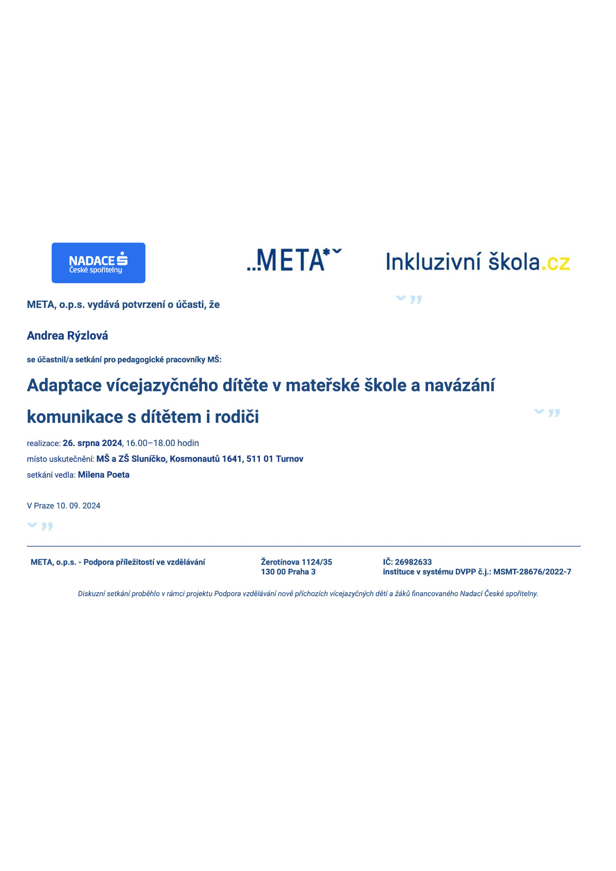Do budoucna plánuji doplnit si další vzdělání, které mi pomůže ještě lépe porozumět dětem a předávat jim to nejlepší ze sebe s laskavostí a radostí.